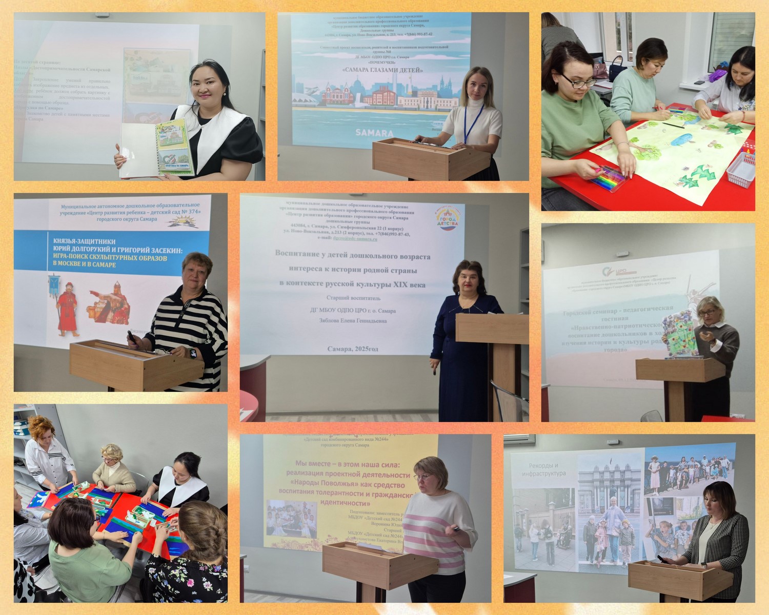 В рамках семинара были представлены инновационные формы, методы и авторские разработки, направленные на патриотическое воспитание и формирование у дошкольников знаний о культурно-историческом наследии Самарского края. Участники смогли познакомиться с эффективными практиками, которые успешно применяются в дошкольных образовательных учреждениях города.