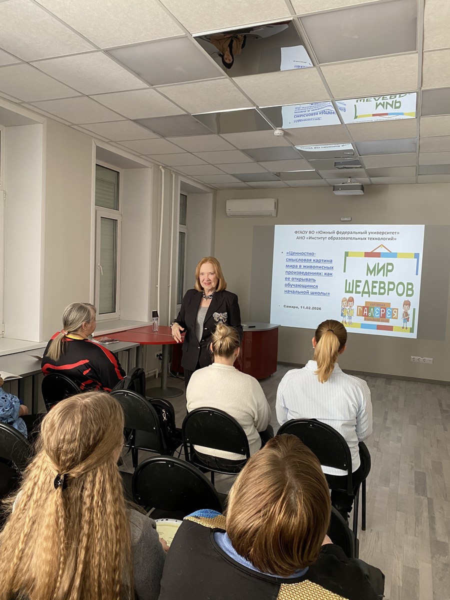 11 февраля 2026 года в МБОУ ОДПО ЦРО г. о. Самара состоялся городской практико-ориентированный семинар, организованный в рамках сотрудничества с АНО ДПО «Институт образовательных технологий». Тема мероприятия: «Ценностно-смысловая картина мира в живописных произведениях: как ее открывать обучающимся начальной школы».