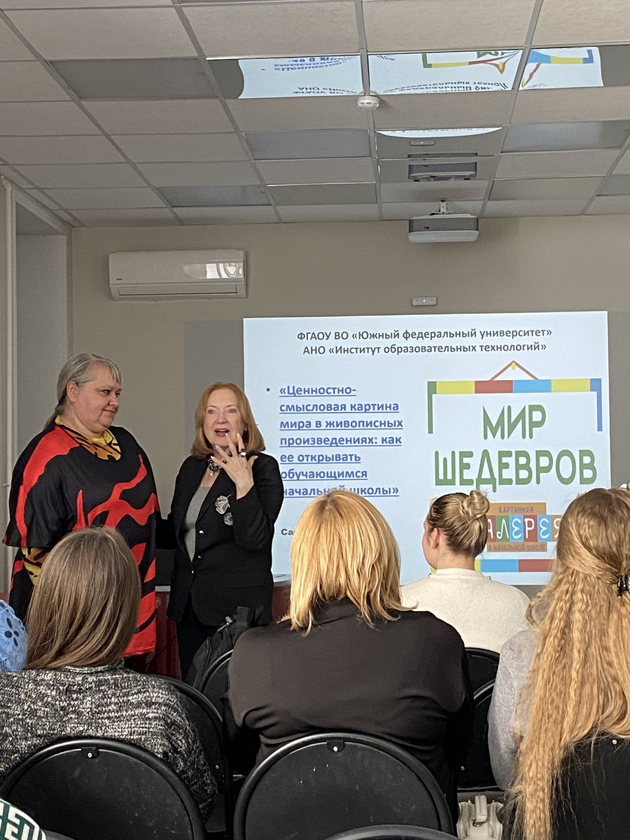Спикером семинара выступила Чумичева Раиса Михайловна, доктор педагогических наук, профессор Академии психологии и педагогики Южного федерального университета, а также Почетный работник высшего профессионального образования. В ходе мероприятия были рассмотрены вопросы духовно-нравственного и гражданско-патриотического воспитания младших школьников с использованием картинной галереи, а также приобщение учащихся к национальному и мировому художественному наследию.